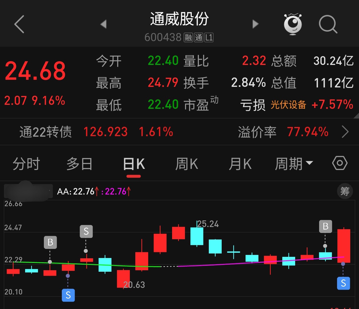 $通威股份(SH600438)$ 板块太强了,9个点出了