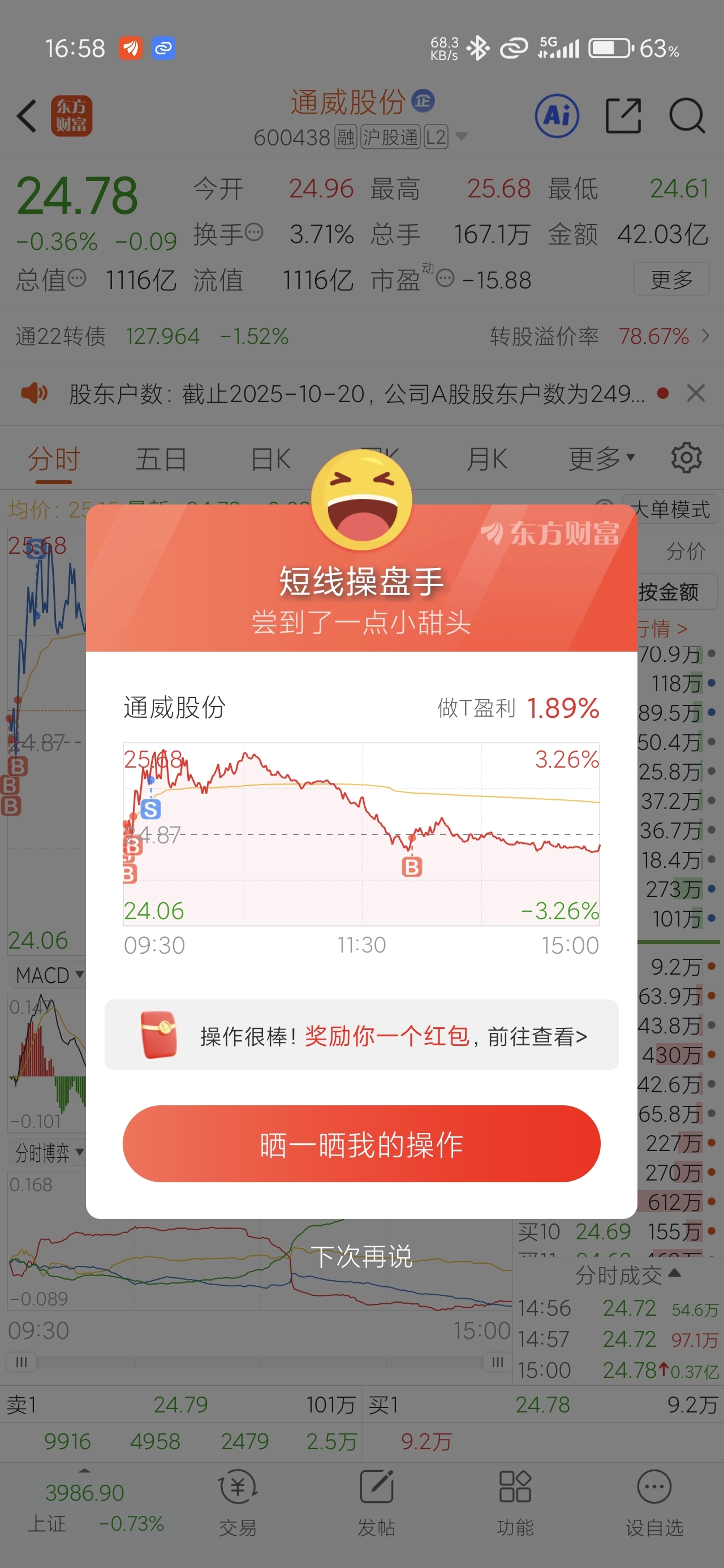 尽管上午的交易未能突破26点,且受到了大盘回调至4000点的影响,但我依旧选择了