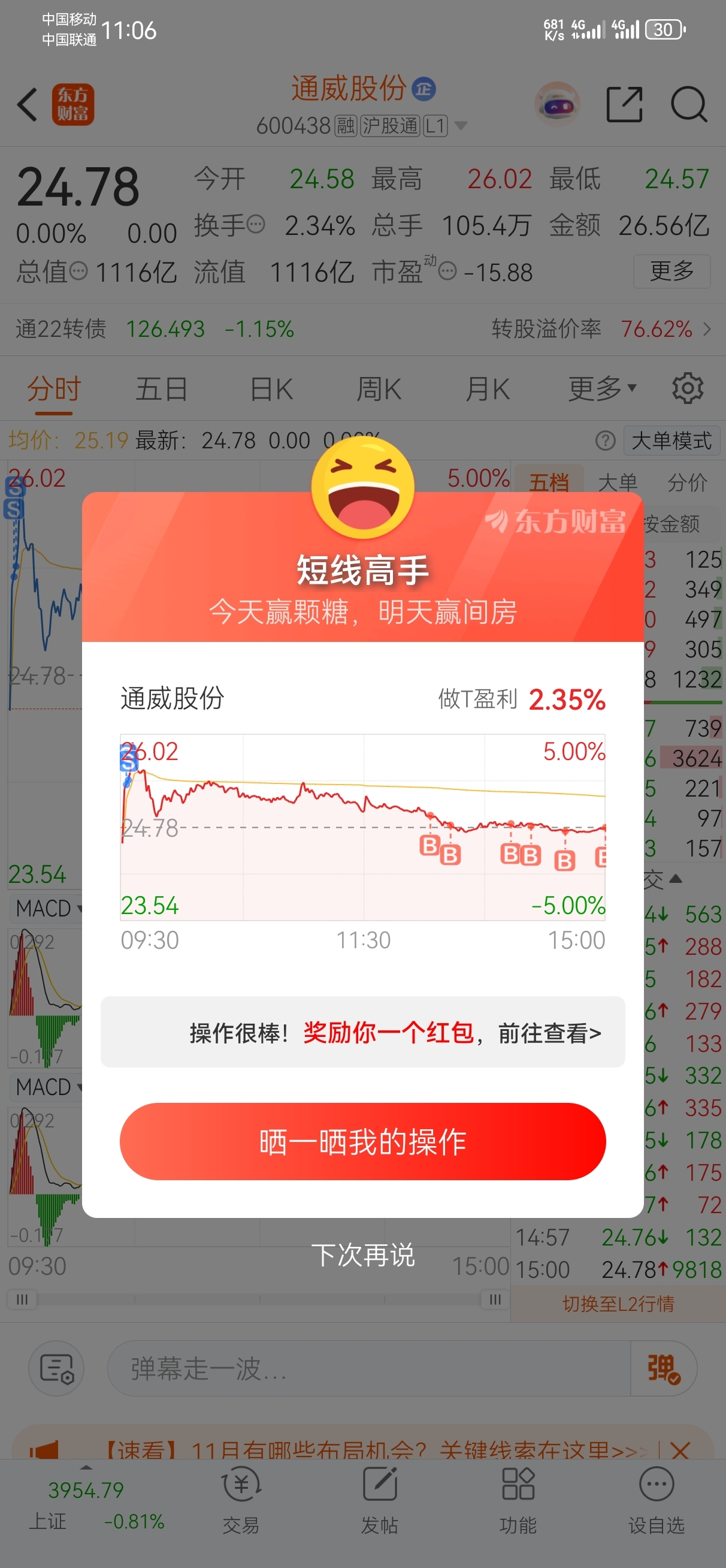 $通威股份(SH600438)$ 今天开盘还是正常做T,下午收到了几个好友的消息做了补仓。今天硅料会议圆满收官达到预期,下周上市公司将启动公告流程,各企业实控人将签署今日会议的备忘录。各企业将严格控制产量和销量,并完成保证金的缴纳。期待下周会有一个好的开始。
