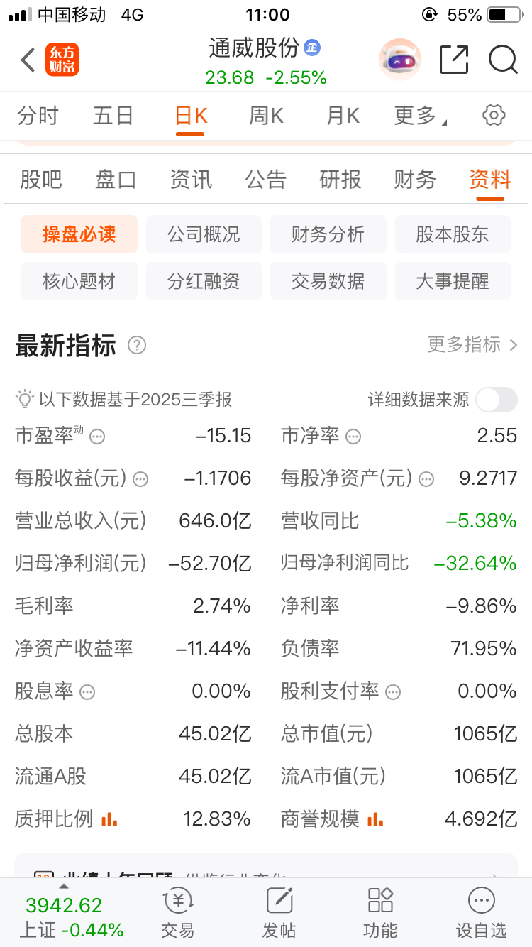 $通威股份(SH600438)$ 通威股份、隆基绿能、晶奥科技,财务都太糟了,等破位吧,三大指数都高位被位了,一起破吧,反内卷都没用,顶多让你少亏不至于破产,想回到辉煌的时候,不太现实。