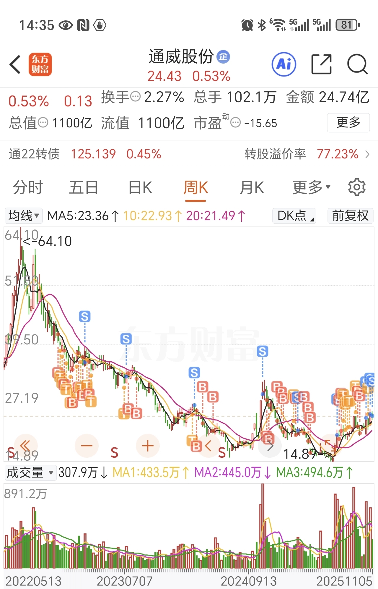 $通威股份(SH600438)$ 刚进股市就入了这个大坑,总算爬出来了