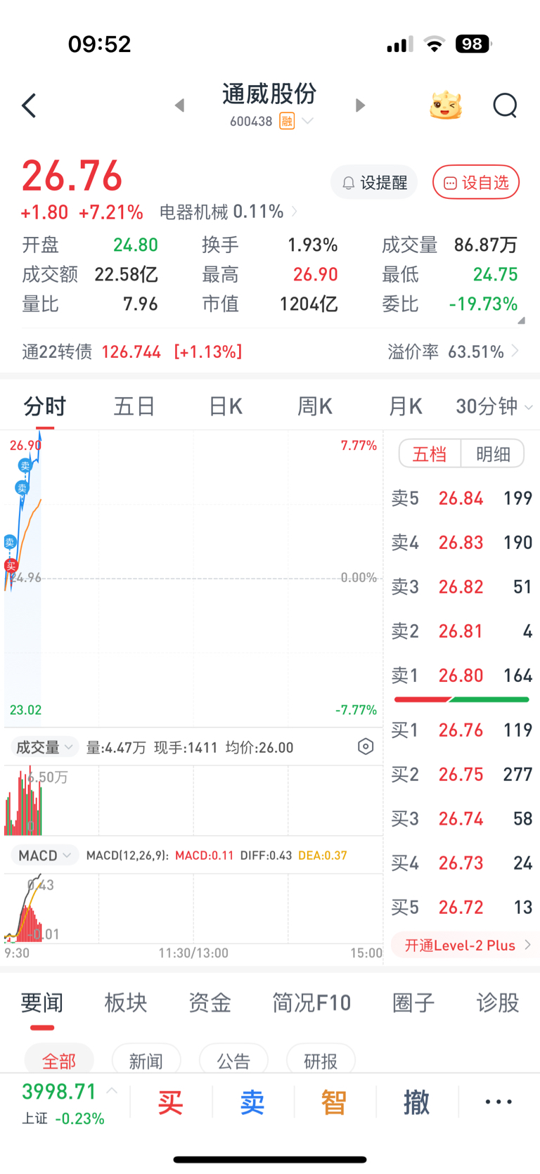 $通威股份(SH600438)$ 别涨了哥错了错了错了 再也不做t了