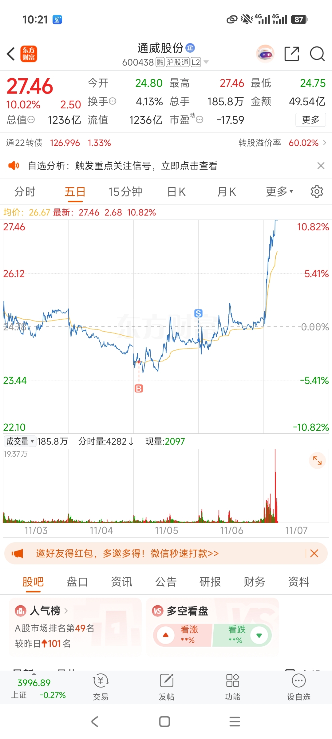 $通威股份(SH600438)$ 卖飞了,亏了20个。。。。。。。。。