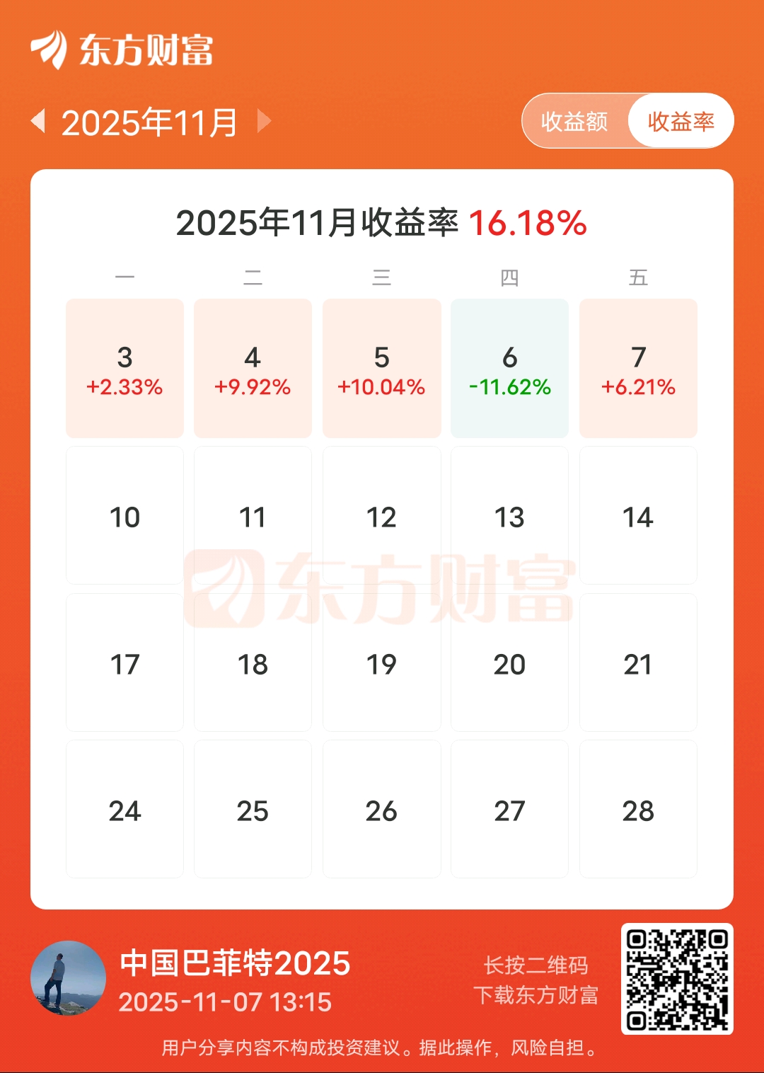 感谢我大A股,感谢所有主力,10月小目标超额完成,11月小目标已实现十分之一,继续冲刺本月小目标150%,大家一起加油