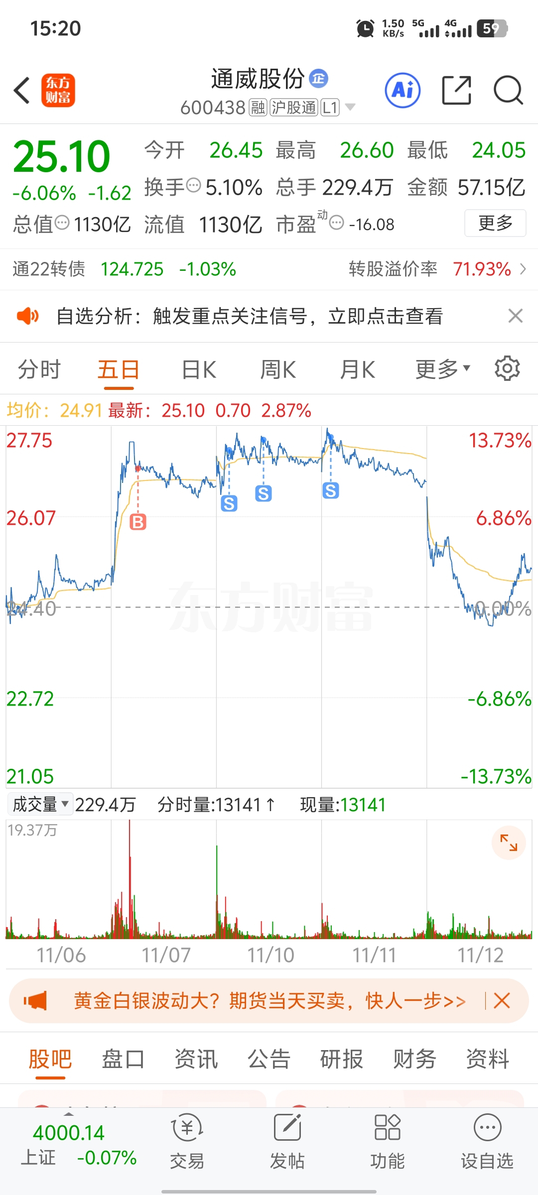 $通威股份(SH600438)$ #复盘记录# 7日买入,本想吃个涨停,没想到主力砸盘出货,今天错过跌停入场,明日低开进,没做t是因为不想,也确实没想到回调这么多