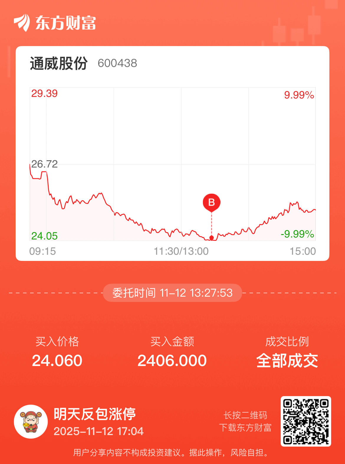 温馨提示: 1.根据《证券法》规定,禁止编造、传播虚假信息或者误导性信息,扰乱证券市场;2.用户在本社区发表的所有资料、言论等仅代表个人观点,与本网站立场无关,不对您构成任何投资建议。用户应基于自己的独立判断,自行决定证券投资并承担相应风险。《东方财富社区管理规定》