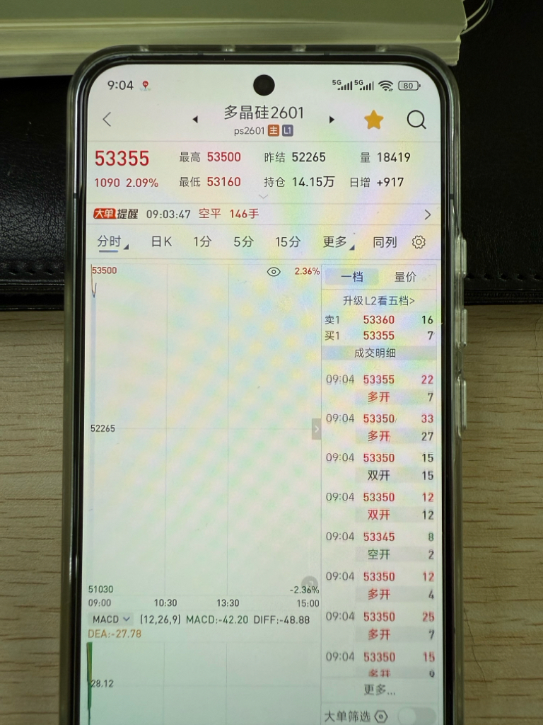 $通威股份(SH600438)$ 多晶硅期指高开两个点