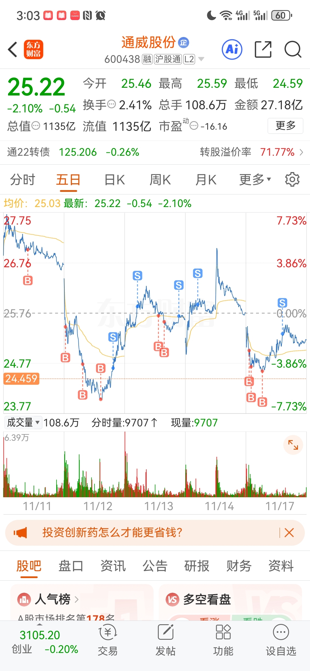 $通威股份(SH600438)$ 今天不错给机会加仓做T了,涨跌都赚,收盘微红。光伏行情不会这么快结束的,大家拿稳扶好。