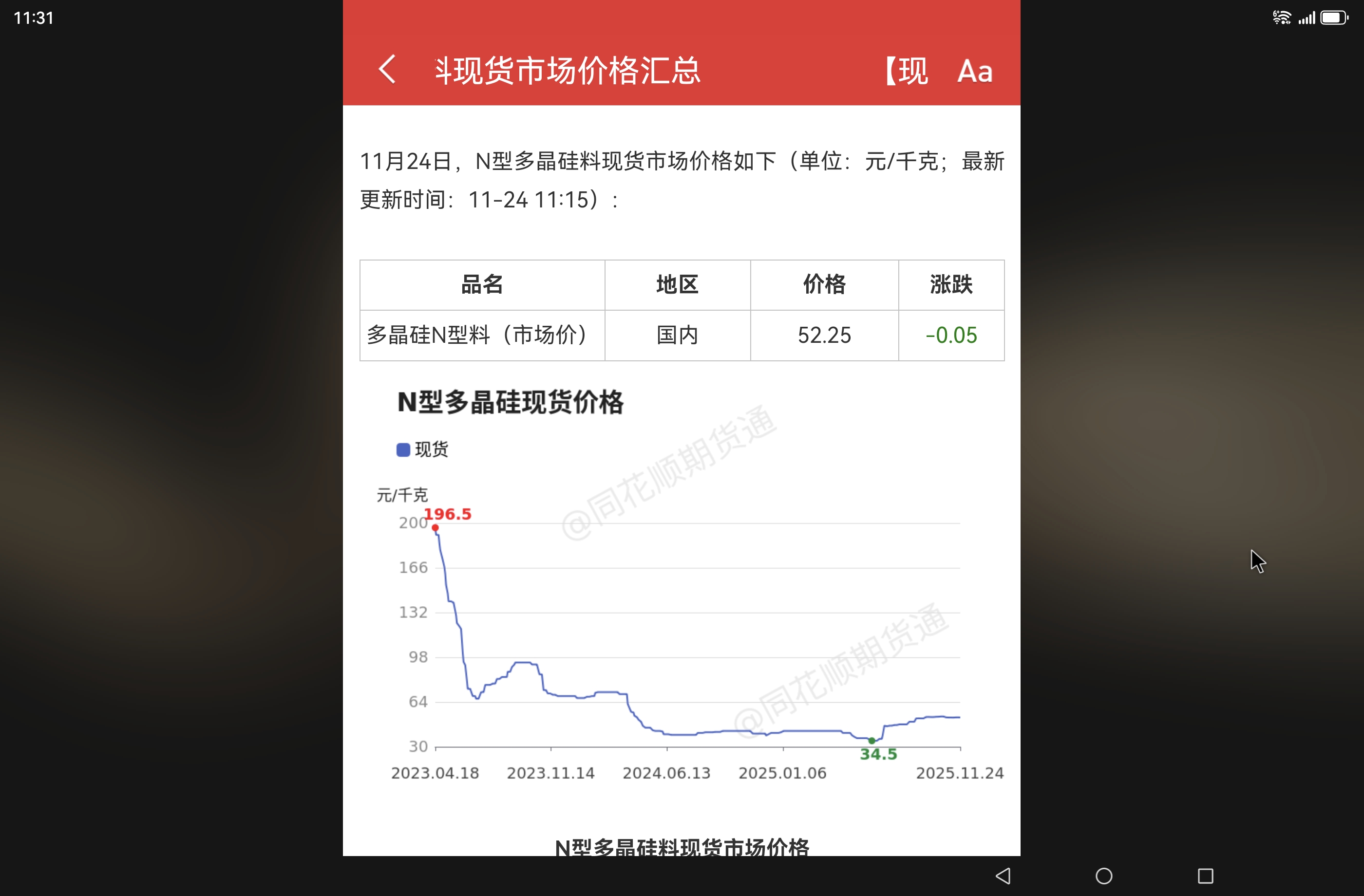 7月反内卷以来,多晶硅现货已经初步稳定在52.3元/公斤!