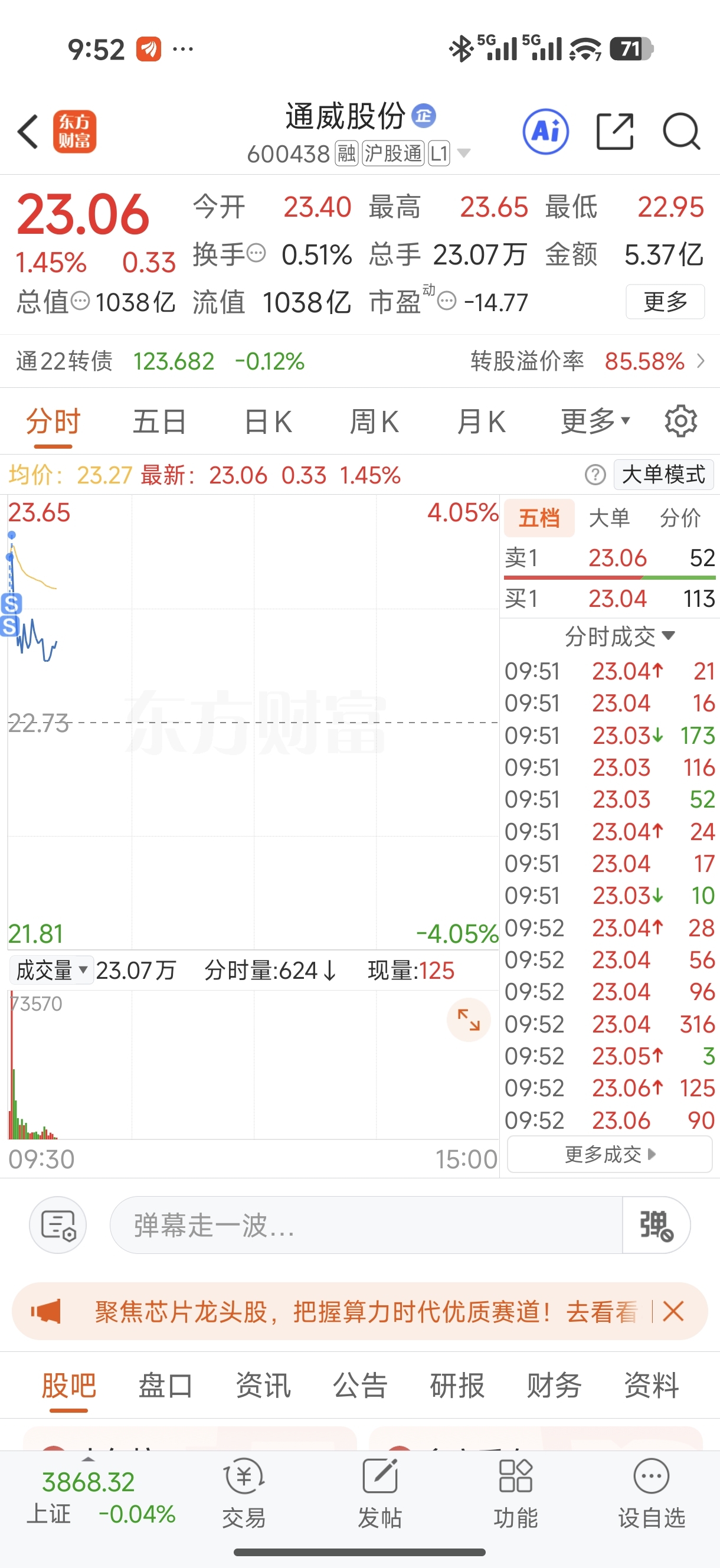 $通威股份(SH600438)$ 做T降低成本高开没好事,哈哈