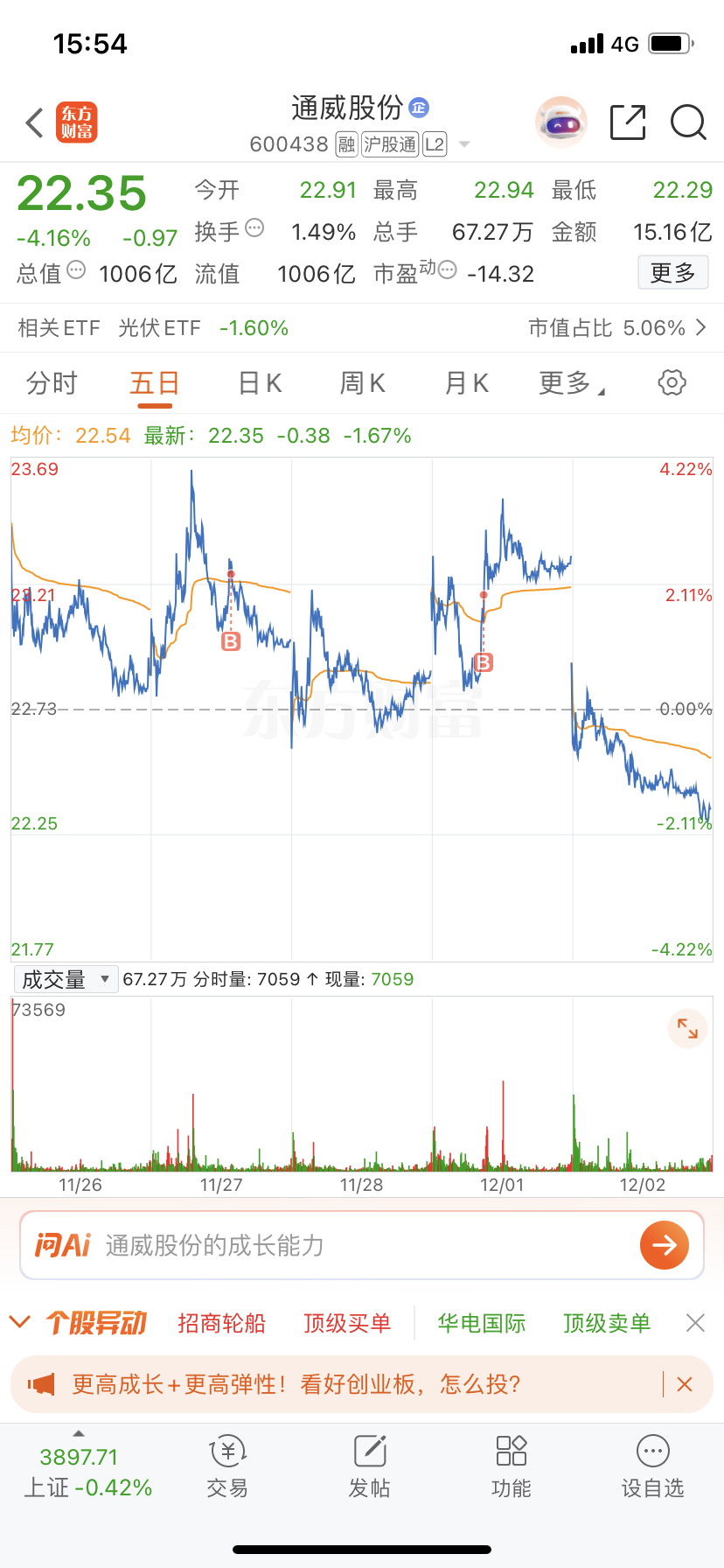 $通威股份(SH600438)$ 果然主力是在等我入套,买了你就死给我看