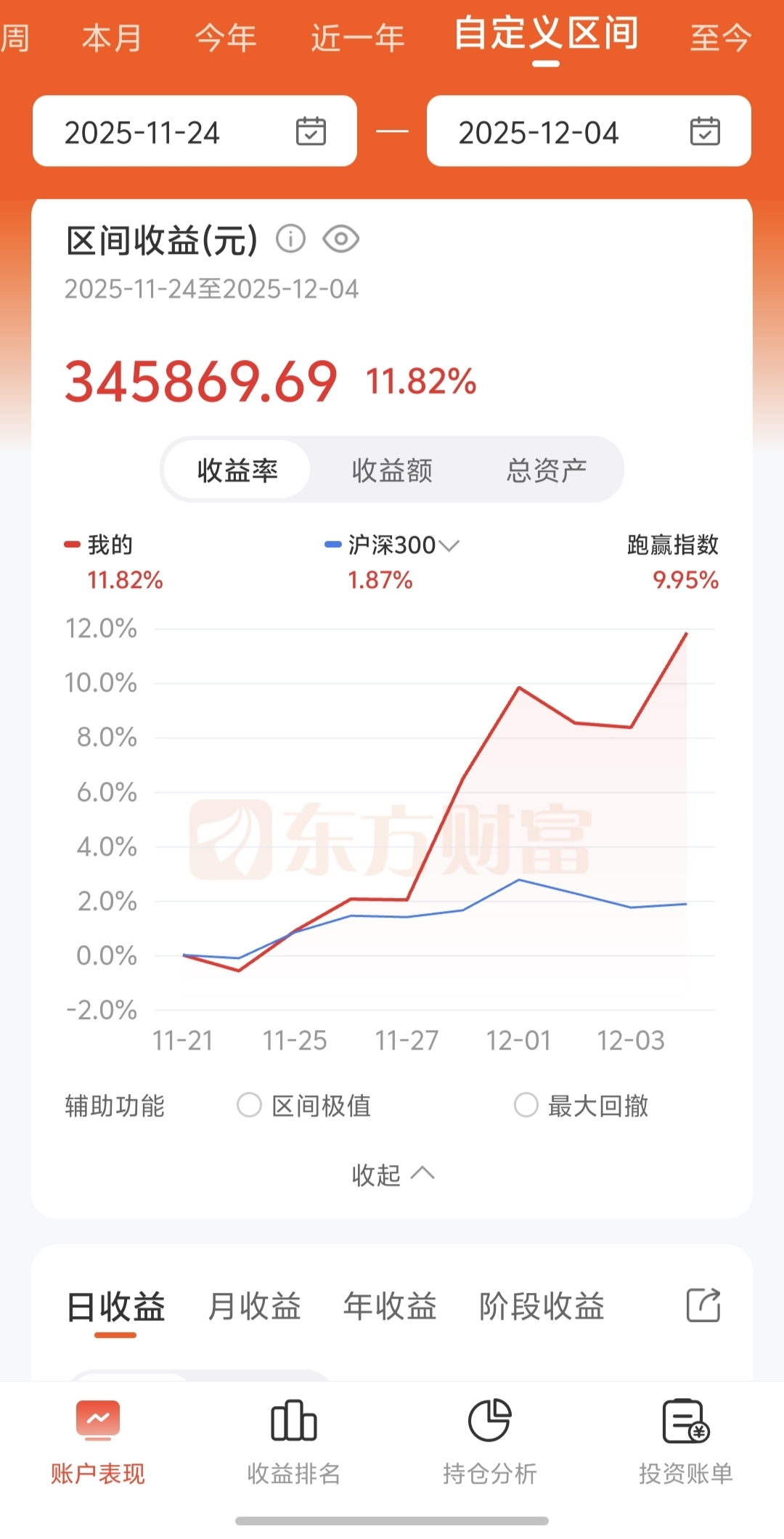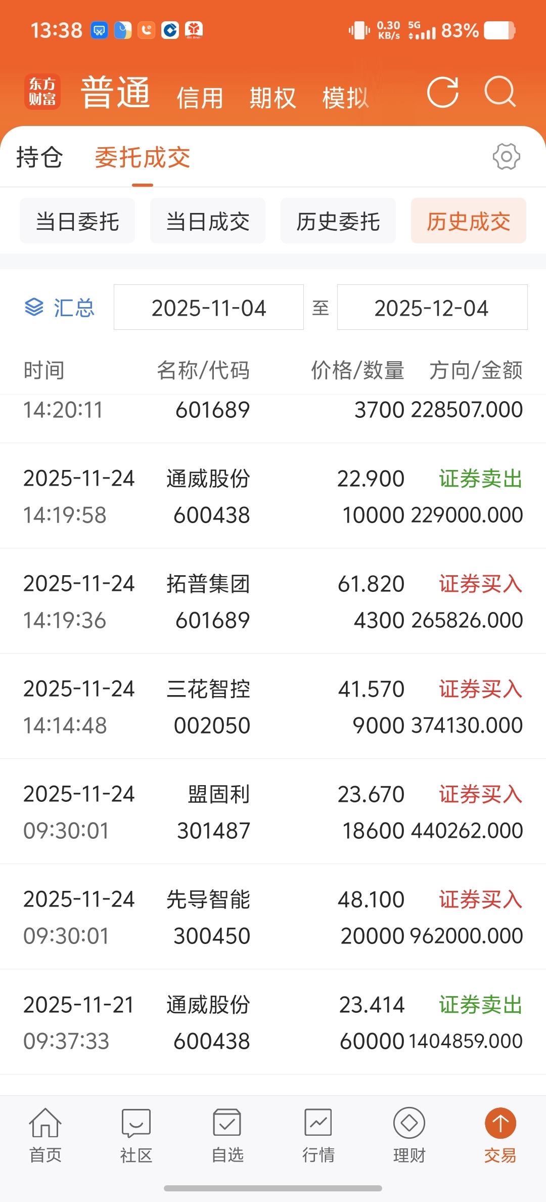 11月20号21号被通威打懵了,周末想了很久,24 25号分批把手上的通威清得只剩一千股换赛道了,调仓到现在把十一月在通威挨亏的赚回来了