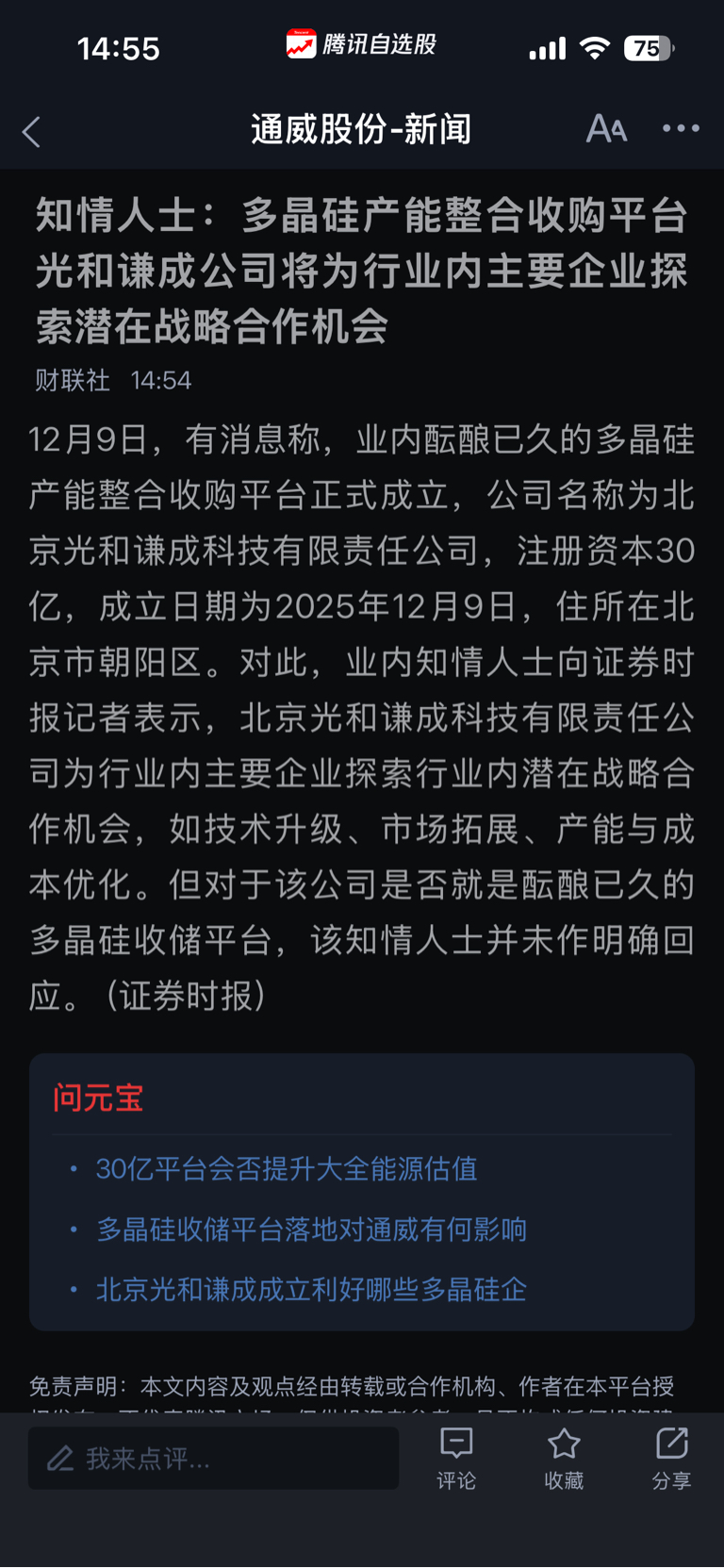 $通威股份(SH600438)$ 有不会又是小作文吧