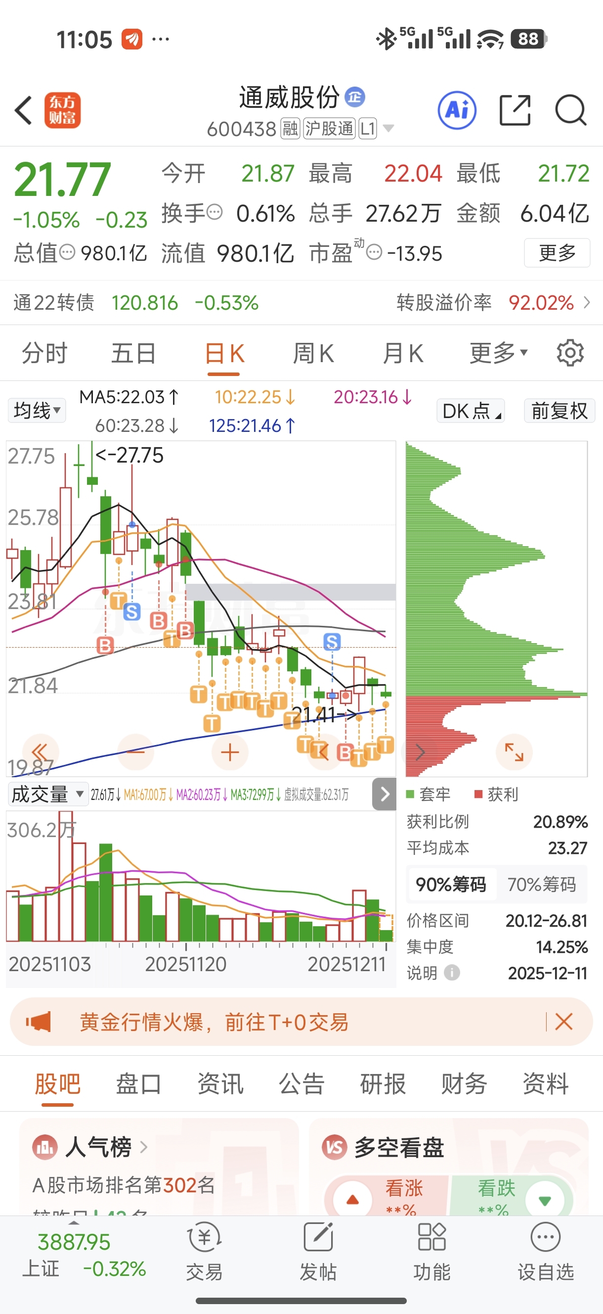 $通威股份(SH600438)$ 25.20成本做TT到了23