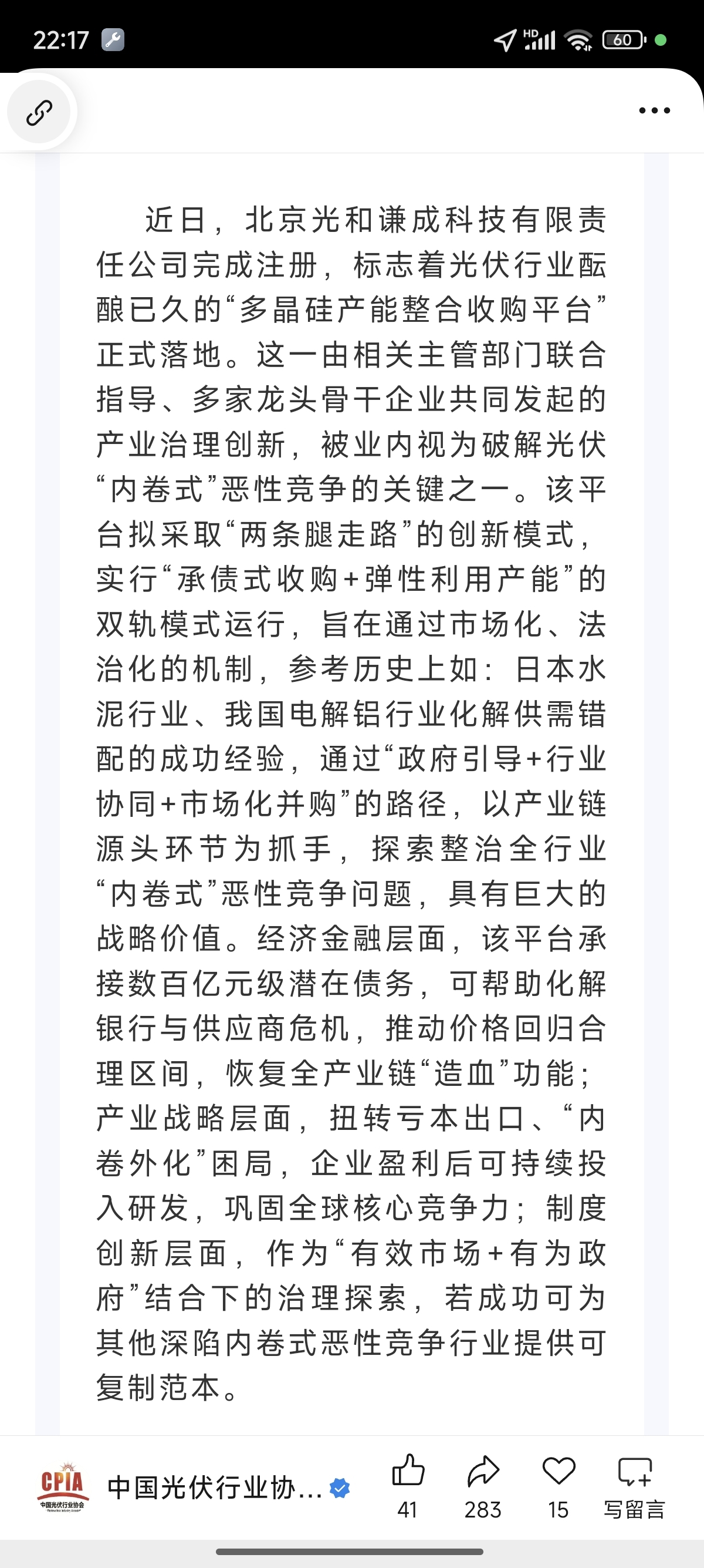 $通威股份(SH600438)$ 终于不是知情人士了,光伏协会今天六点发布了