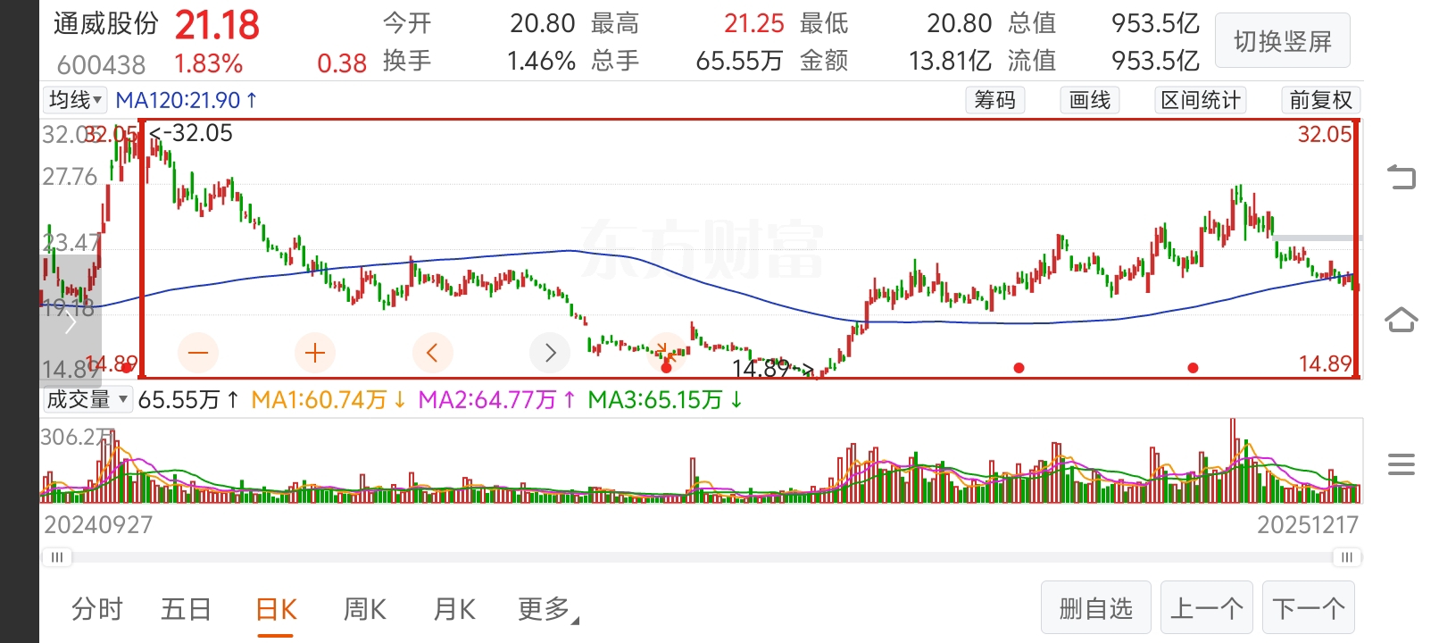 $通威股份(SH600438)$ 懂没?划一个0.618分位看长线,三五年