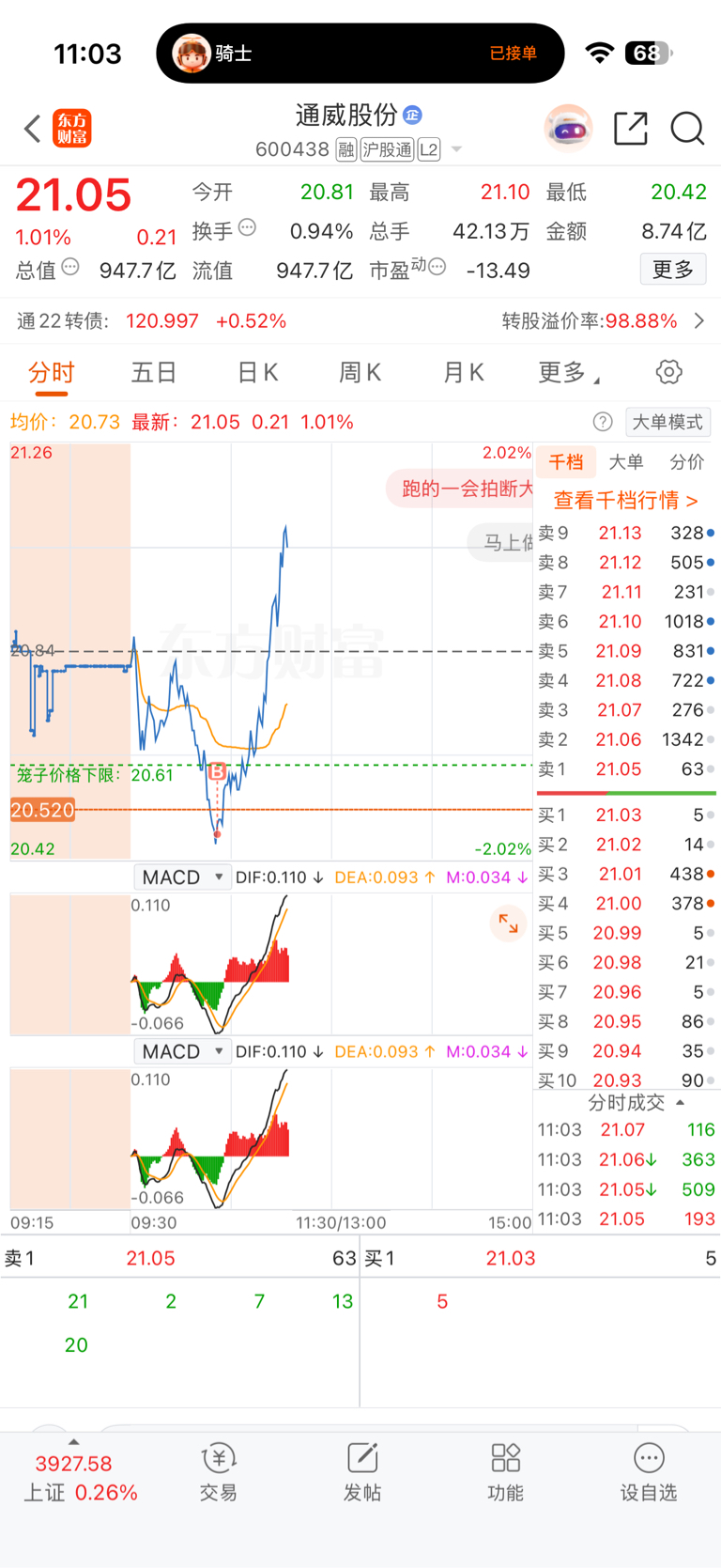 $通威股份(SH600438)$ 好消息:让我抄上底了。坏消息:只买了一手