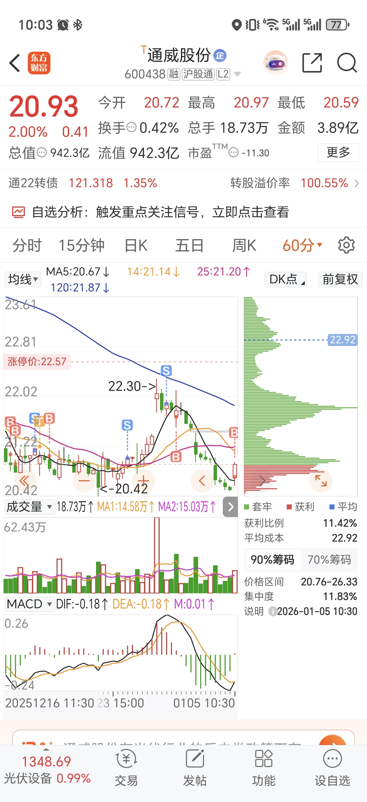 $通威股份(SH600438)$ 加油,弱转强我就不T了,不然还要做差价