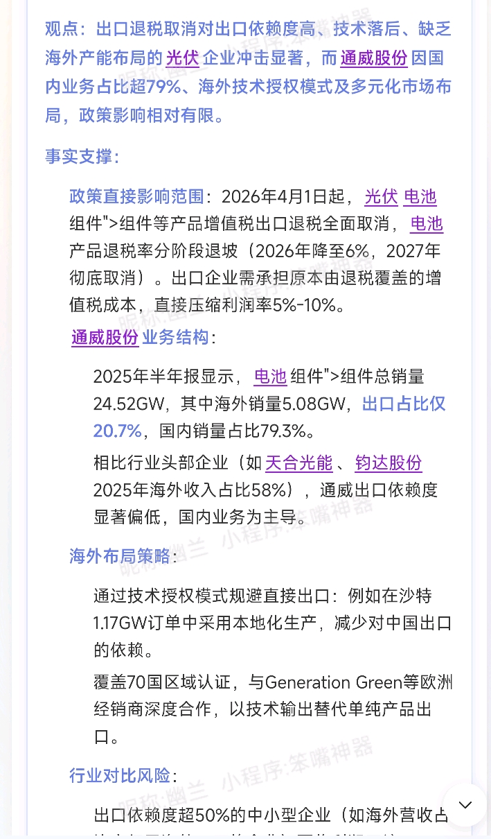 $通威股份(SH600438)$ 这个政策对通威影响不大
