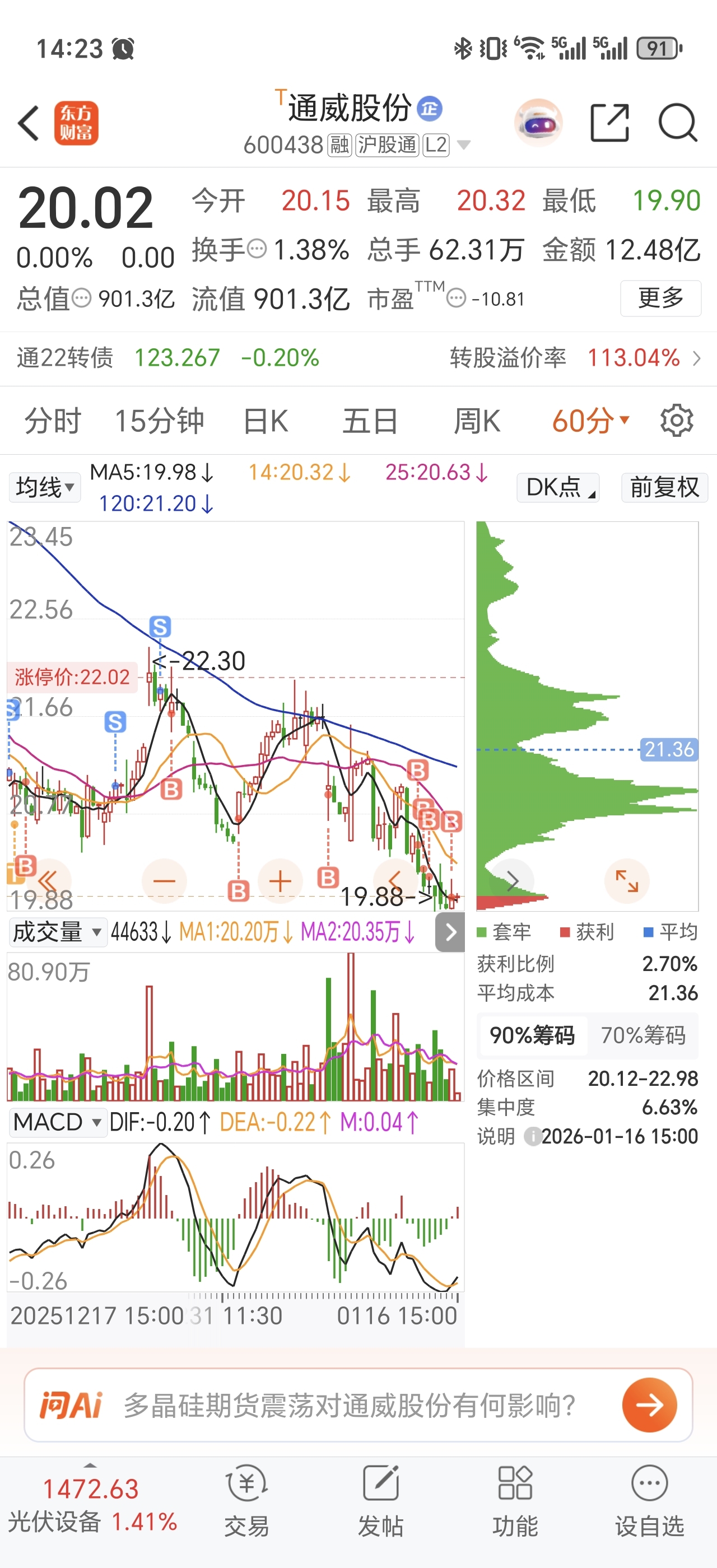 $通威股份(SH600438)$ 不要慌,听说要对高频量化动手了,中长线依旧看好,短线不要碰,可能震荡为主,有机会就T一下,没机会多看少动。