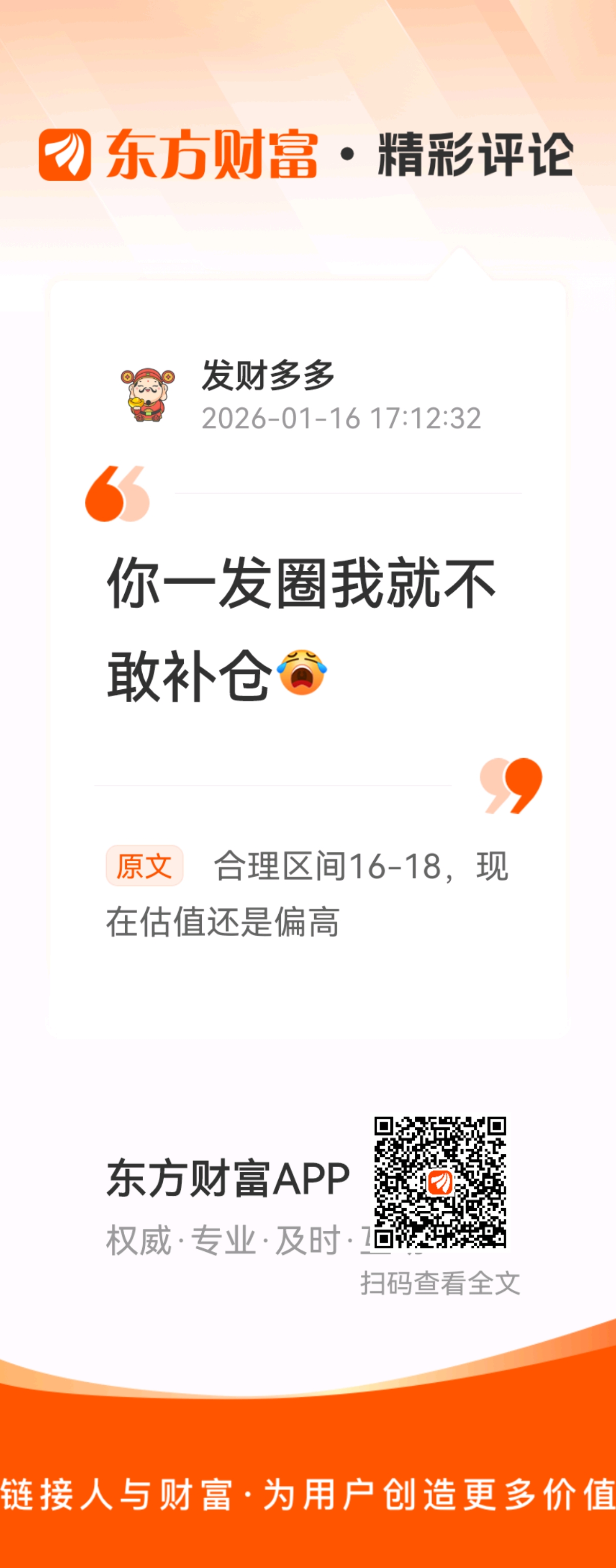 温馨提示: 1.根据《证券法》规定,禁止编造、传播虚假信息或者误导性信息,扰乱证券市场;2.用户在本社区发表的所有资料、言论等仅代表个人观点,与本网站立场无关,不对您构成任何投资建议。用户应基于自己的独立判断,自行决定证券投资并承担相应风险。《东方财富社区管理规定》