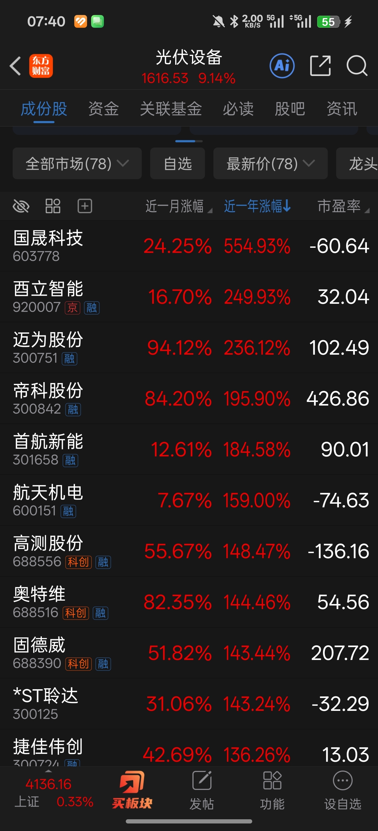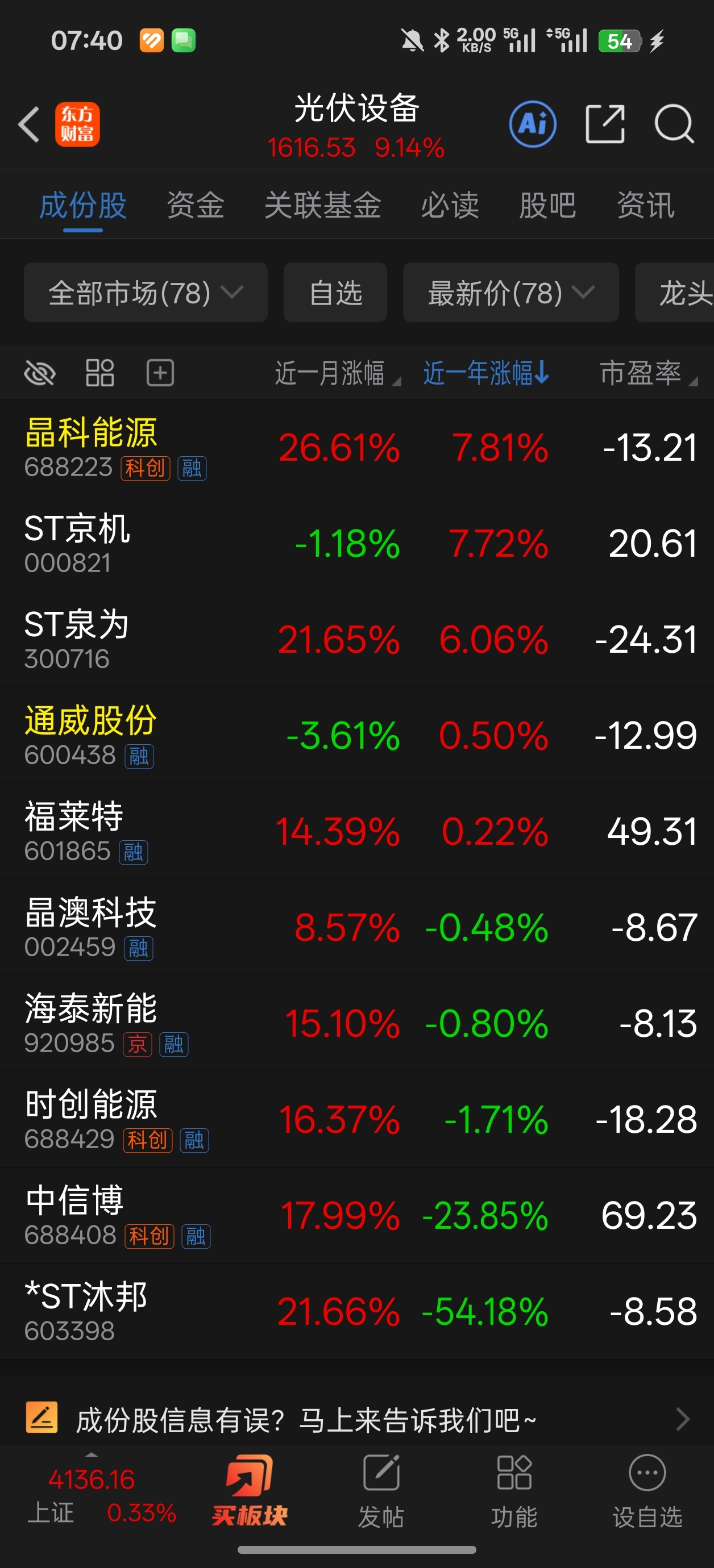 主要的光伏企业中通威近一年涨幅排在倒数第二。难怪我不挣钱了。这么多股票,怎么我买