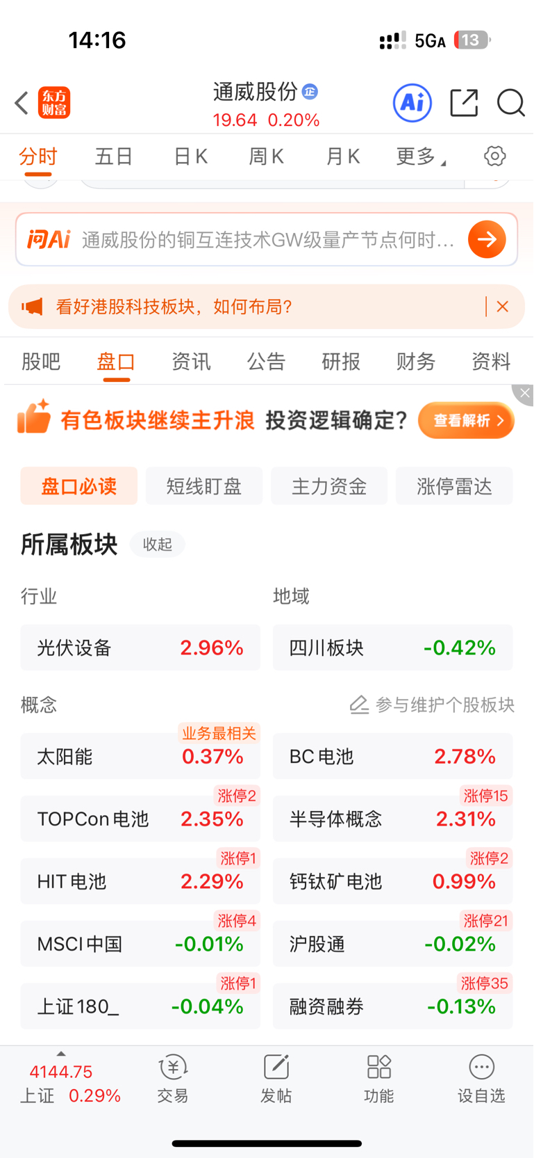 这通威,每天要被甩开多少个点,板块