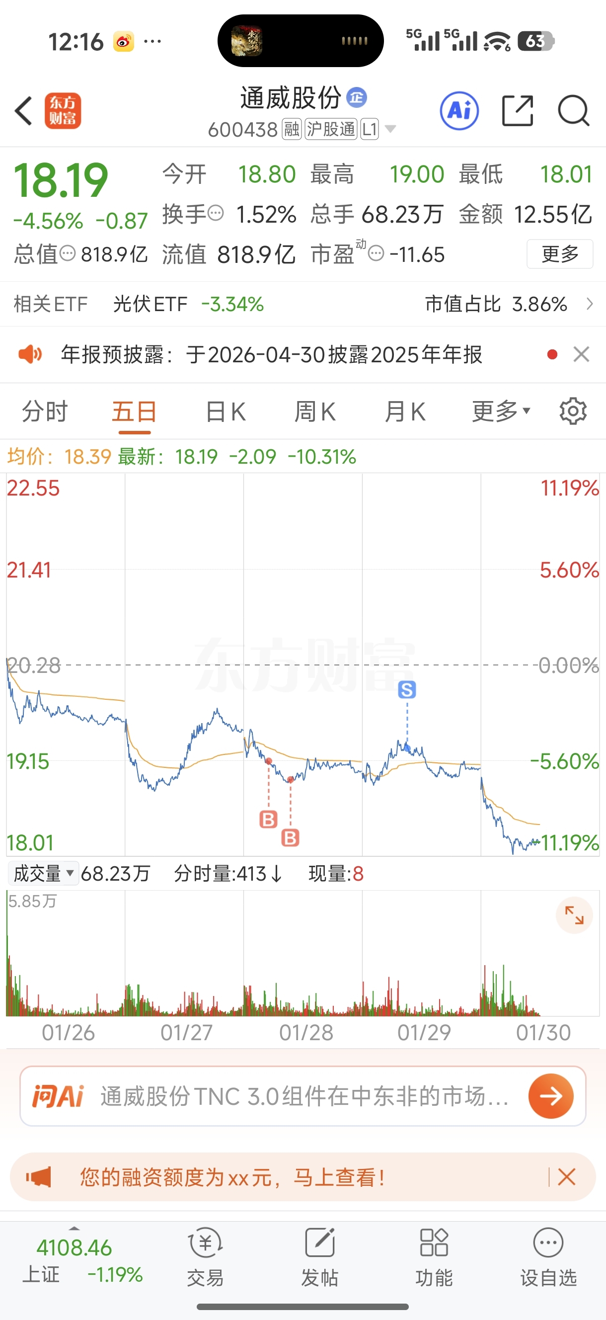 $通威股份(SH600438)$ 不走差点亏米了