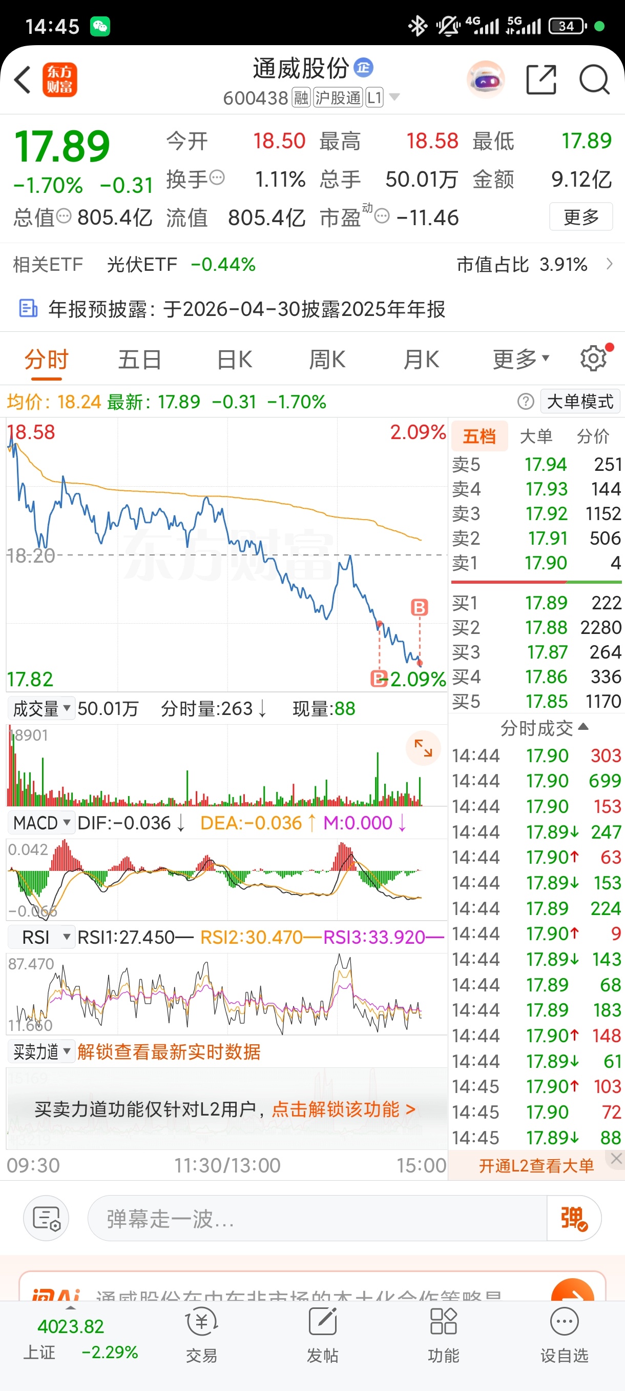 $通威股份(SH600438)$ 吸呀,一层仓位,稳健恪守纪律是第一位的