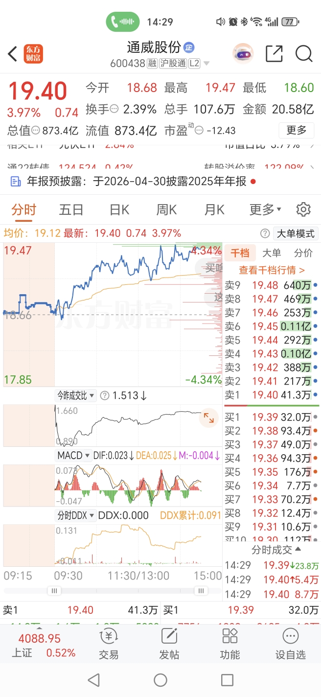 $通威股份(SH600438)$ 卖的厉害