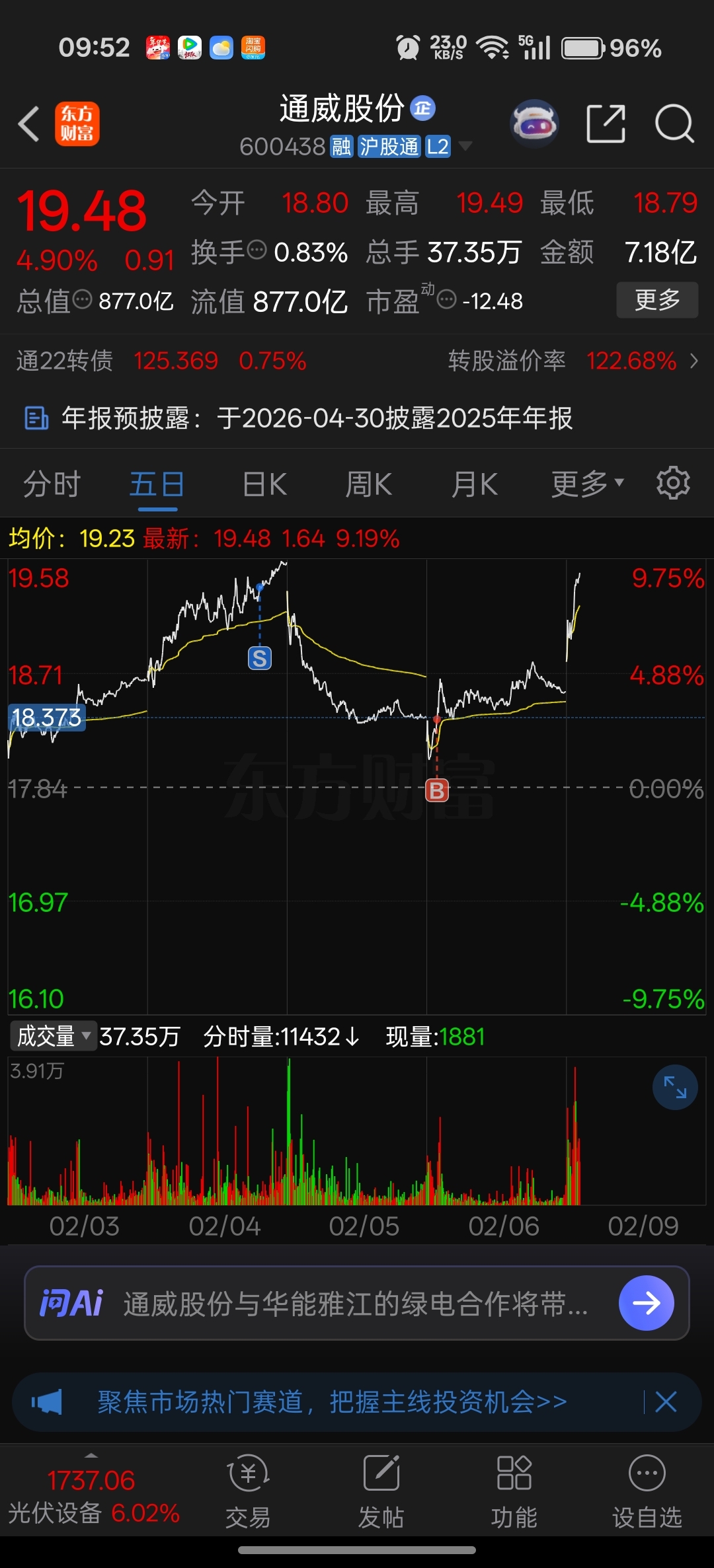 $通威股份(SH600438)$ 要走吗?给个建议