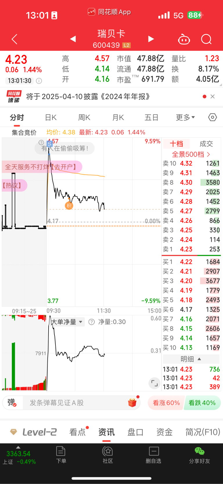 $瑞贝卡(SH600439)$ 早盘拉高就卖。。呵呵