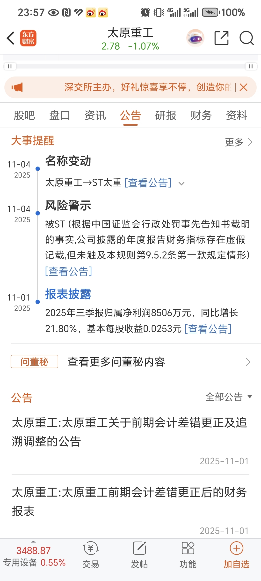 $瑞贝卡(SH600439)$ 股友们,同一天立案的太原重工下周要st了,