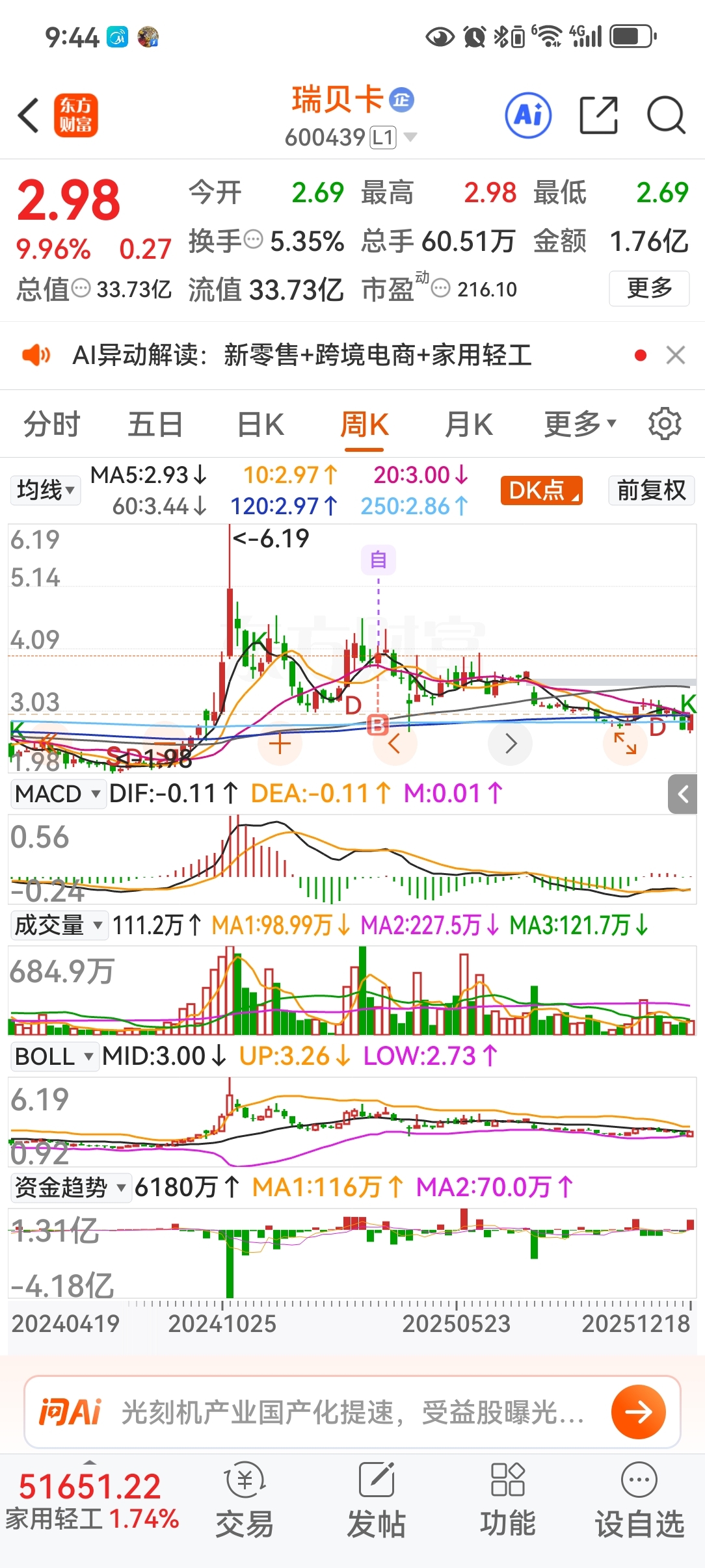 $瑞贝卡(SH600439)$ 还亏24个点,不挣钱不走路