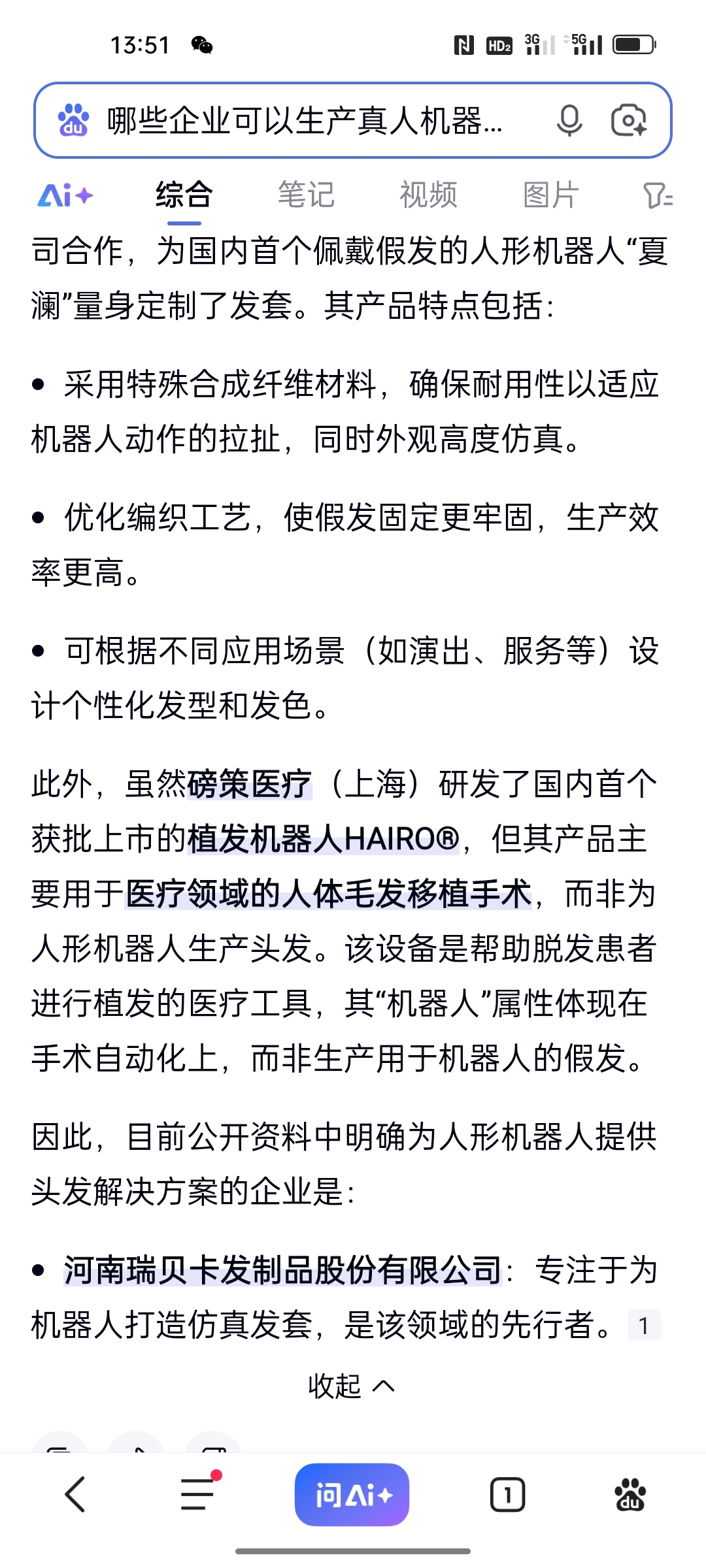 能生产真人机器人头发目前国内只有瑞贝卡和华夏数字合作,头发技术全球领先