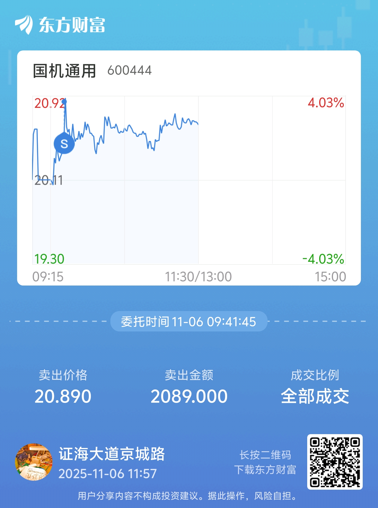 温馨提示: 1.根据《证券法》规定,禁止编造、传播虚假信息或者误导性信息,扰乱证券市场;2.用户在本社区发表的所有资料、言论等仅代表个人观点,与本网站立场无关,不对您构成任何投资建议。用户应基于自己的独立判断,自行决定证券投资并承担相应风险。《东方财富社区管理规定》