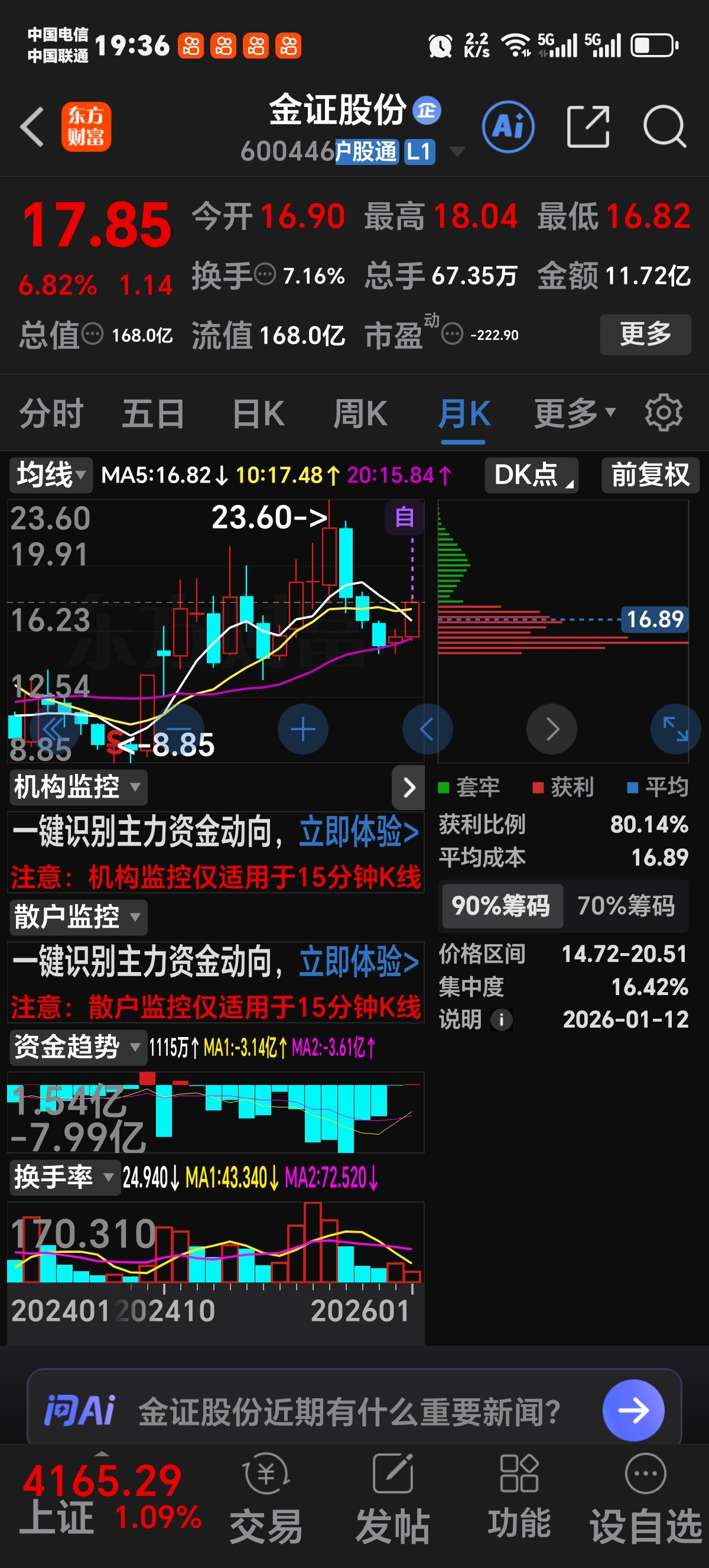 看好这只票!短线压力位18.50元,中期压力位23元!