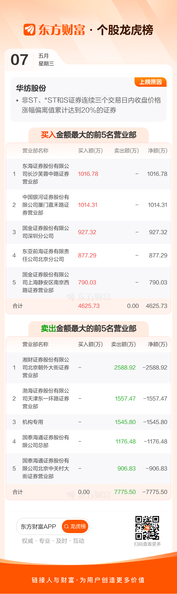 华纺股份(600448)龙虎榜数据(05-07)