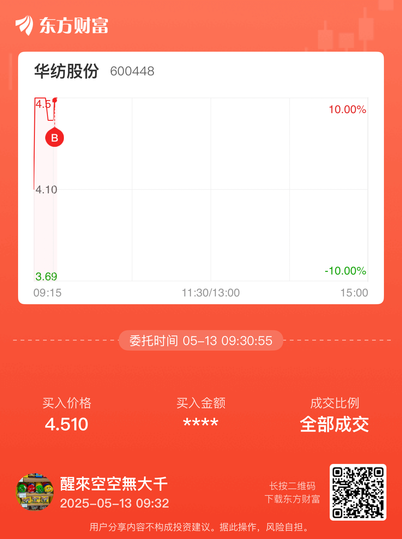 温馨提示: 1.根据《证券法》规定,禁止编造、传播虚假信息或者误导性信息,扰乱证券市场;2.用户在本社区发表的所有资料、言论等仅代表个人观点,与本网站立场无关,不对您构成任何投资建议。用户应基于自己的独立判断,自行决定证券投资并承担相应风险。《东方财富社区管理规定》