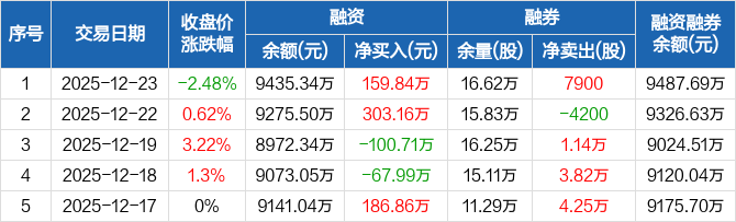 华纺股份:融资净买入159.84万元,融资余额9435.34万元(12-23)