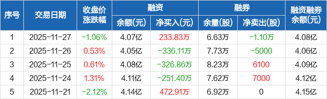 宁夏建材:融资净买入233.83万元,融资余额4.07亿元(11-27)