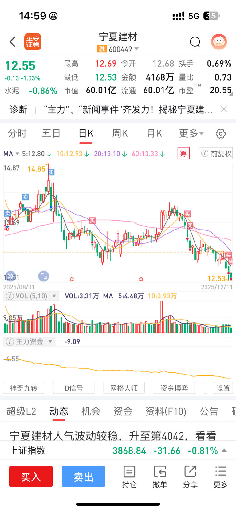 $宁夏建材(SH600449)$ 一天买一点,赚点就卖