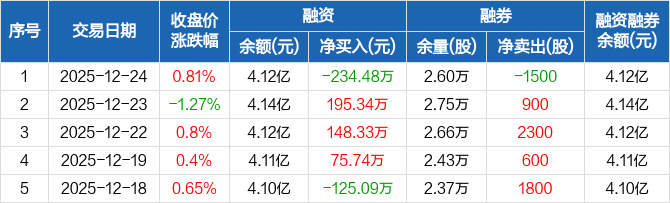 宁夏建材:融资净偿还234.48万元,融资余额4.12亿元(12-24)