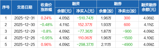 宁夏建材:融资净偿还510.74万元,融资余额4.05亿元(12-31)