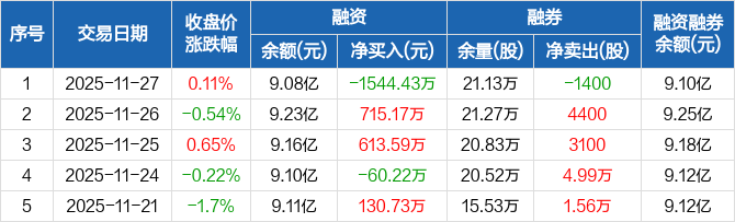 涪陵电力:融资净偿还1544.43万元,融资余额9.08亿元(11-27)