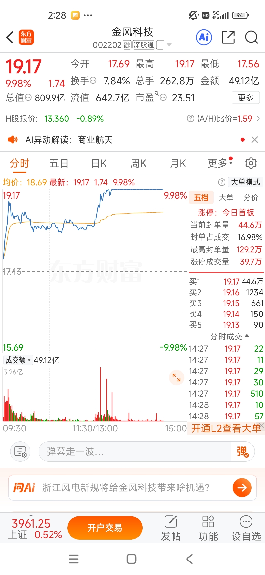 我11.9卖了金风科技,9.9买了涪陵电力,直接损失十万