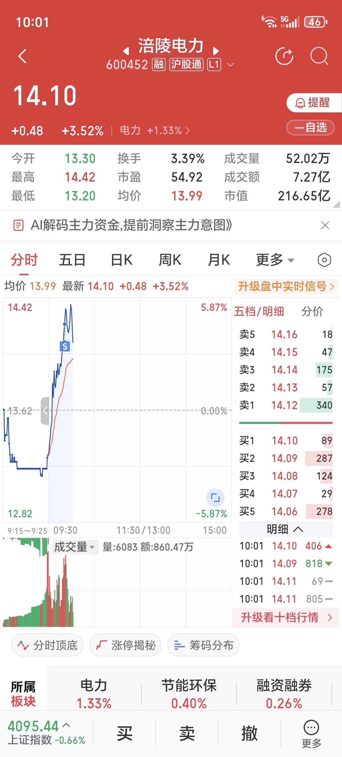 $涪陵电力(SH600452)$ 这波5个点还是挺舒服的