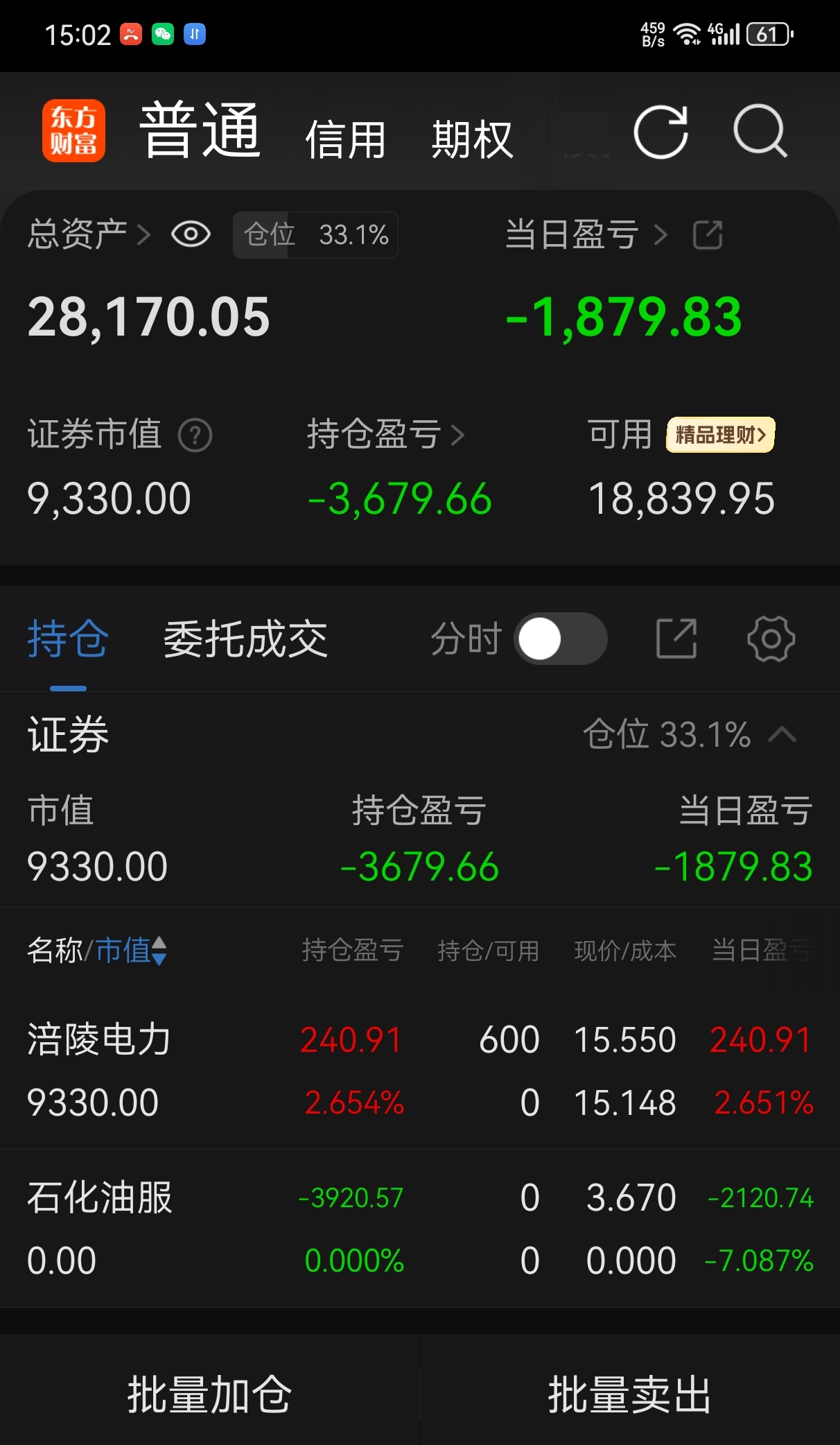 今日卖出:石化油服(亏损3920元)