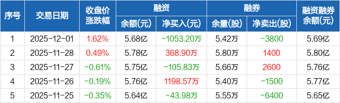 宝钛股份:融资净偿还1053.2万元,融资余额5.68亿元(12-01)