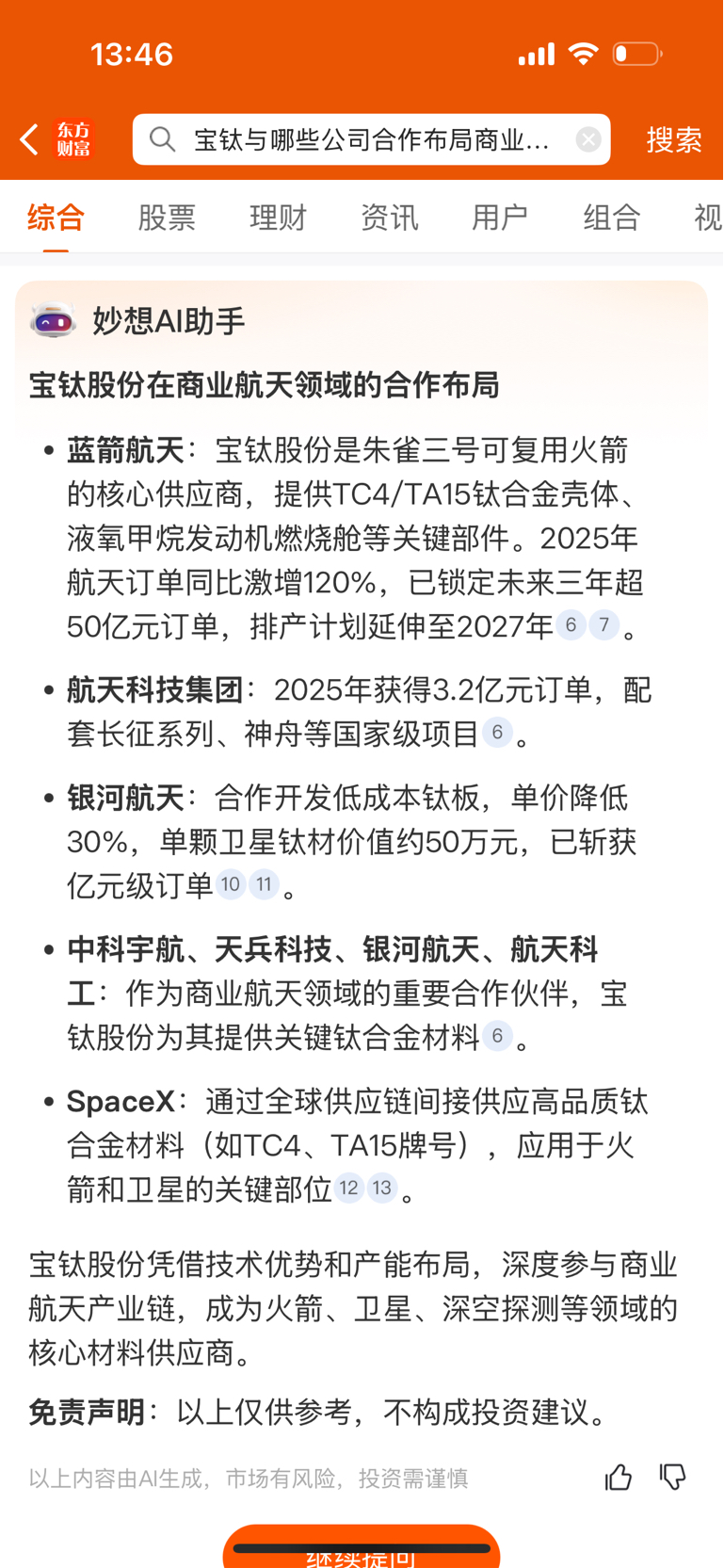 $宝钛股份(SH600456)$ 下一步炒商业航天绩优股!坐稳扶好!
